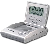 A compact folding travel alarm clock with AM/FM radio from Timex. Takes up virtually no space in a briefcase suitcase or overnight bag. Sensitive AM/FM radio with rotary tuning and volume controls. Telescoping FM antenna. Includes a large easy to read LCD display and a built in LED light for nighttime viewing. Operates on 2 "AAA" batteries not included.